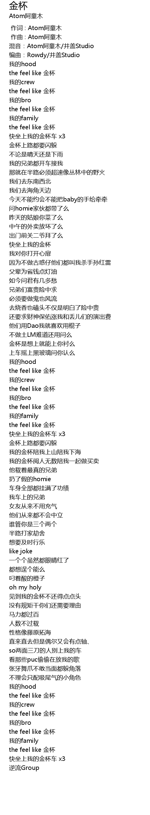 | [03:00.595] | 快坐上我的金杯车 x3 |