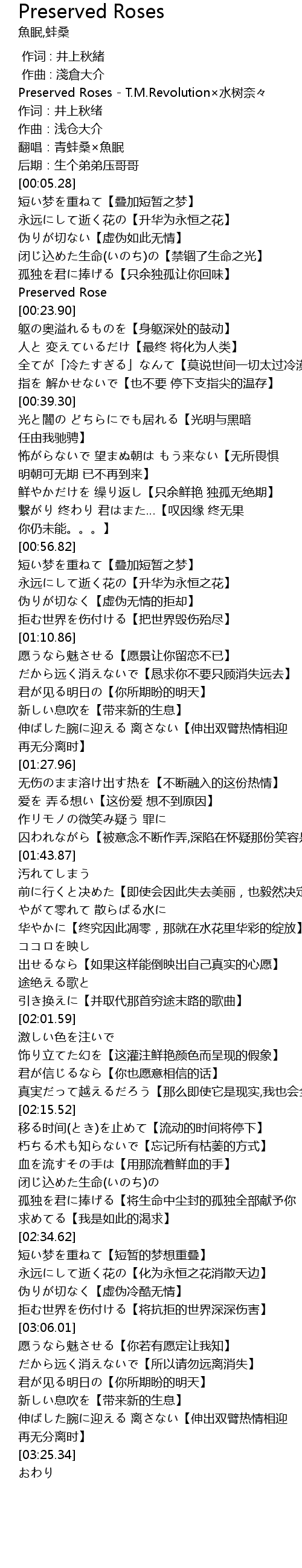 | [00:00.54] | Preserved Roses - T.M.Revolution×水树奈々 |