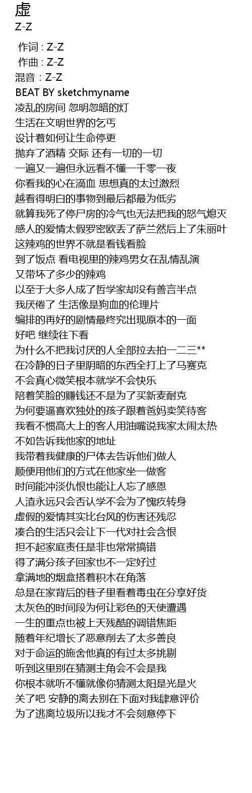 | [01:21.944] | 不如告诉我他家的地址 我带着我健康的尸体去告诉他们做人 顺便用他们的方式在他家坐一做客 |