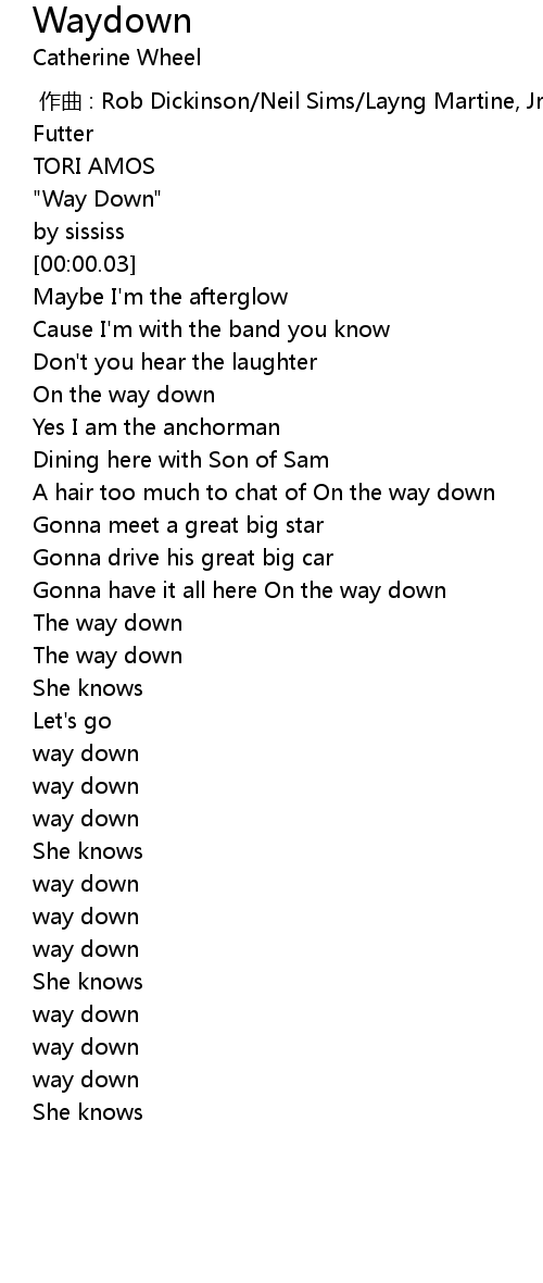 | [00:00.00] | zuo qu : Rob Dickinson Neil Sims Layng Martine, Jr. Dave Hawes Brian Futter |