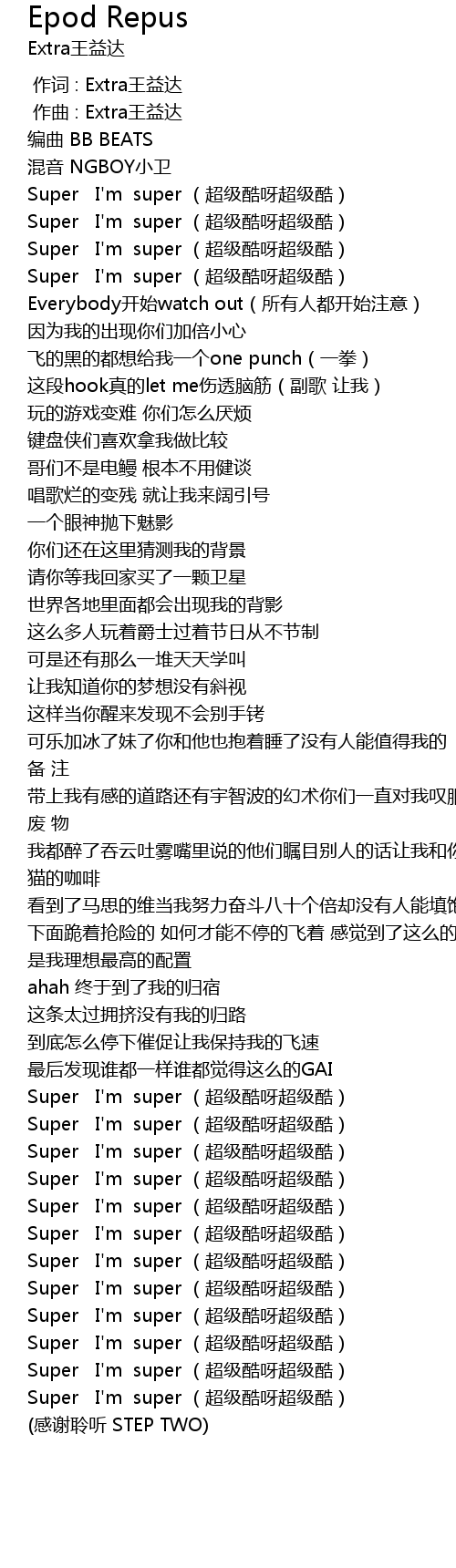 | [02:03.336] | Super I' m super chāo jí kù ya chāo jí kù |
