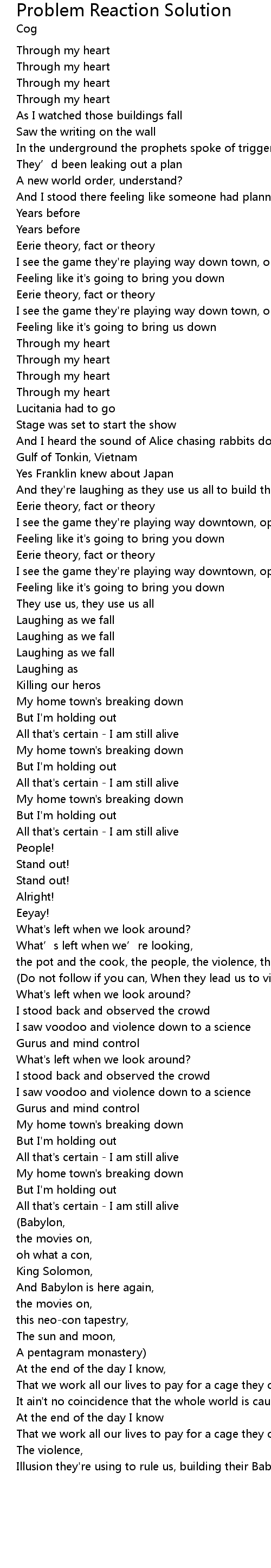 | It ain't no coincidence that the whole world is caught in an endless debt | |