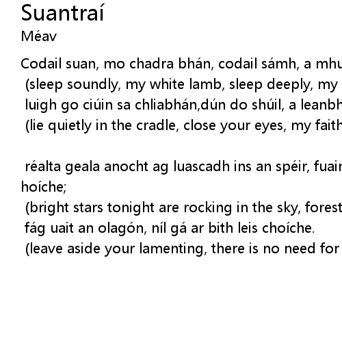| Codail suan, mo chadra bhán, codail sámh, a mhuirnín mhilis, | |