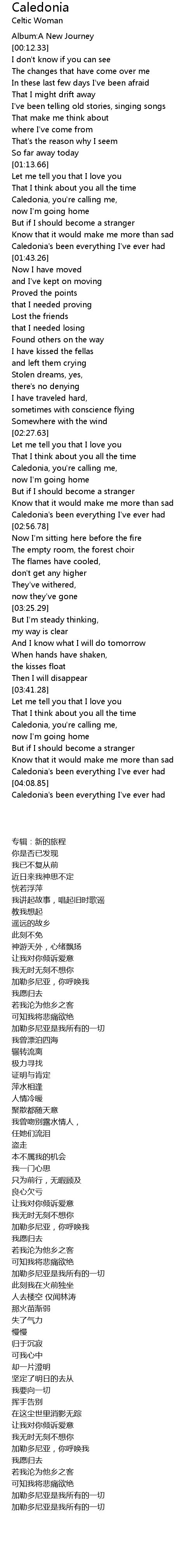 Caledonia, you're calling me, |