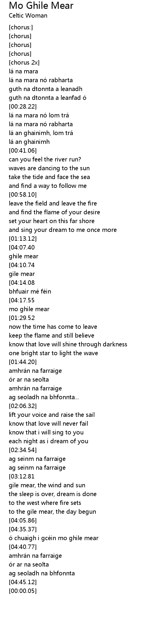 | [04:21.42][04:07.40][02:20.71][01:44.69][01:14.93][03:37.33] | ' se mo laoch mo ghile mear |