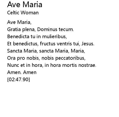 | [02:12.20] | Nunc et in hora, in hora mortis nostrae. |