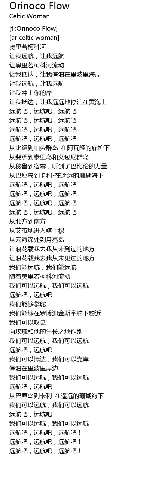 | [02:39.98] | 随着奥里若柯科河流动 |