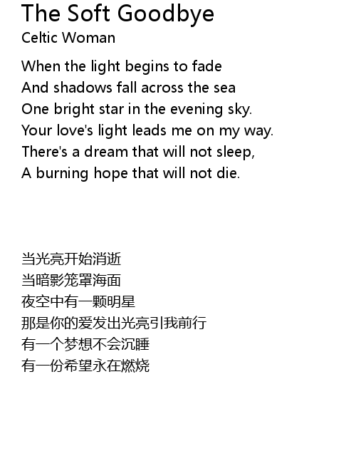 | 歌曲 | The Soft Goodbye |