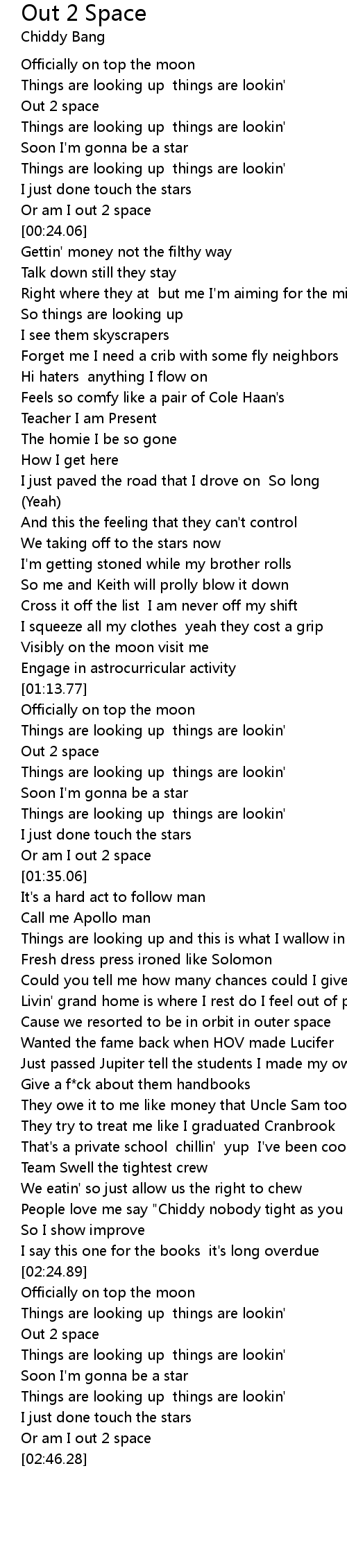 [02:30.83] Out 2 space