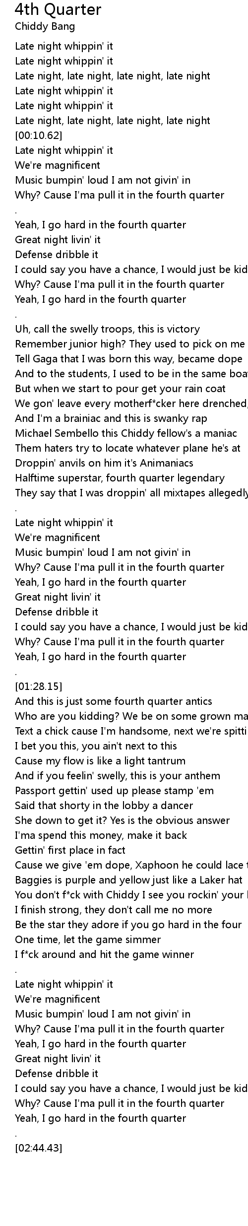 Yeah, I go hard in the fourth quarter |