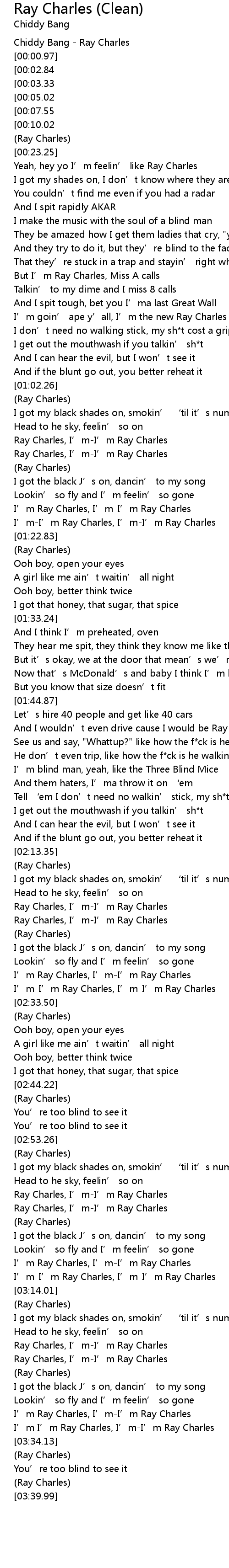 | [02:59.43] | Ray Charles, I’m-I’m Ray Charles |