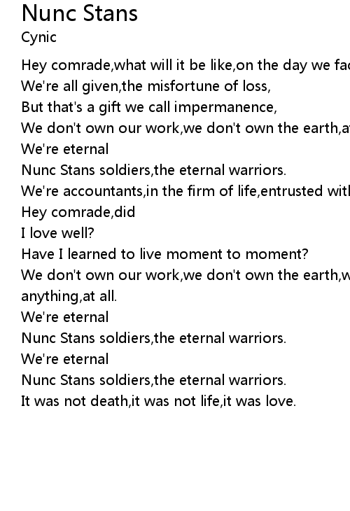 Nunc Stans soldiers,the eternal warriors. |