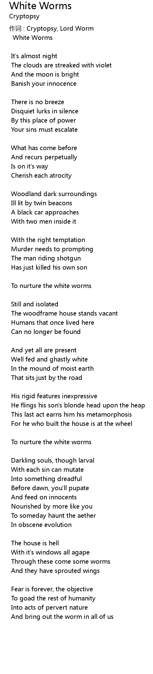 | 作词 : Cryptopsy, Lord Worm | |