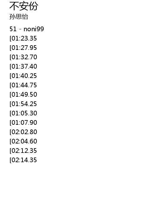 | [01:02.75][02:04.60][02:42.90] | xiang yi ge xiang yi ge che lun |