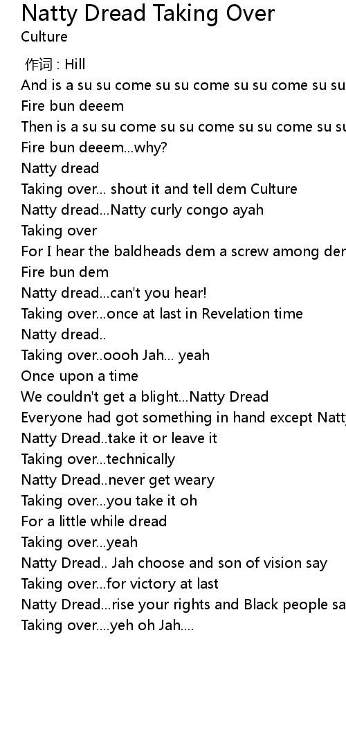 | [00:59.915] | Natty dread... Natty curly congo ayah |