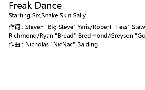 | 作词 : Steven "Big Steve" Yaris/Robert "Fess" Stewart/Jared "Riggsz" Richmond/Ryan "Bread" Bredmond/Greyson "Goose" Tarantino/Snake Skin Salley | |