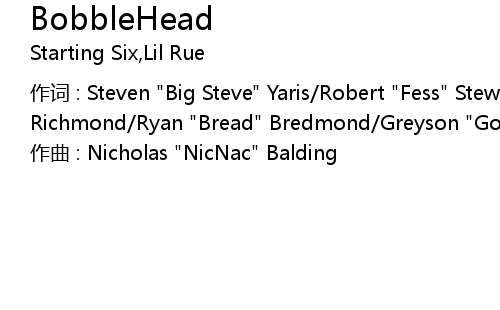 | 作词 : Steven "Big Steve" Yaris/Robert "Fess" Stewart/Jared "Riggsz" Richmond/Ryan "Bread" Bredmond/Greyson "Goose" Tarantino/Lil Rue | |