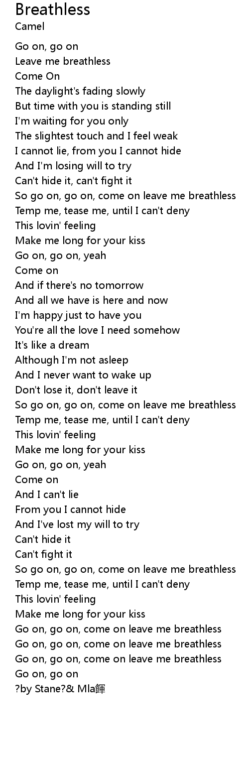 | [02:46.00] | So go on, go on, come on leave me breathless |