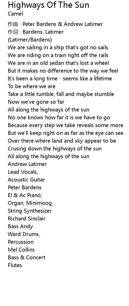 | zuo qu : Peter Bardens Andrew Latimer | |