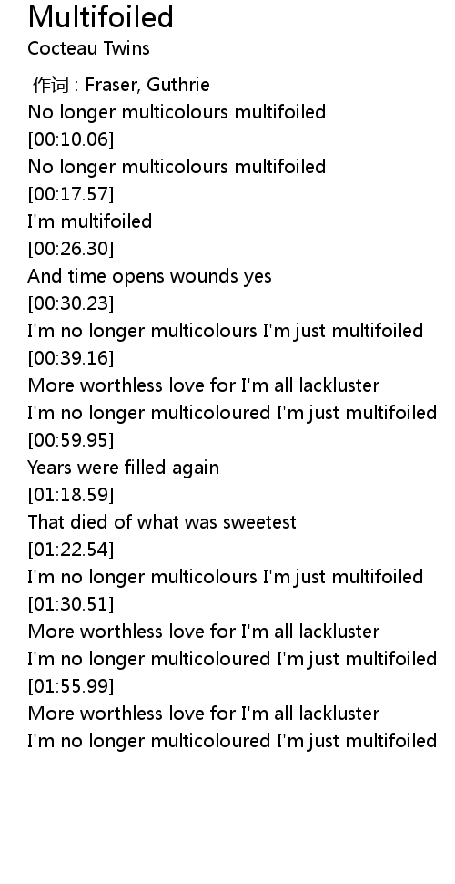 | [00:03.73] | No longer multicolours multifoiled |