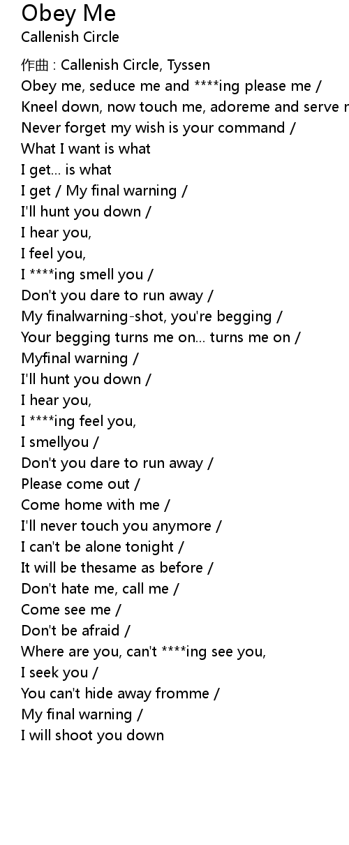 | Obey me, seduce me and ****ing please me / | |