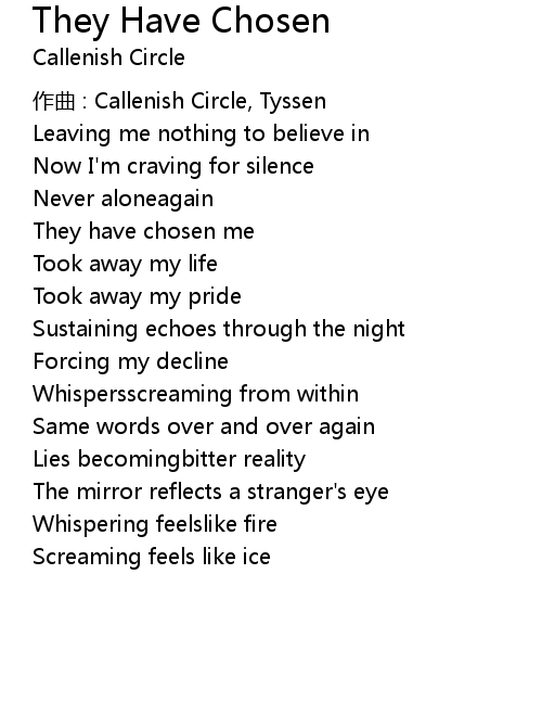 | 歌曲 | They Have Chosen |