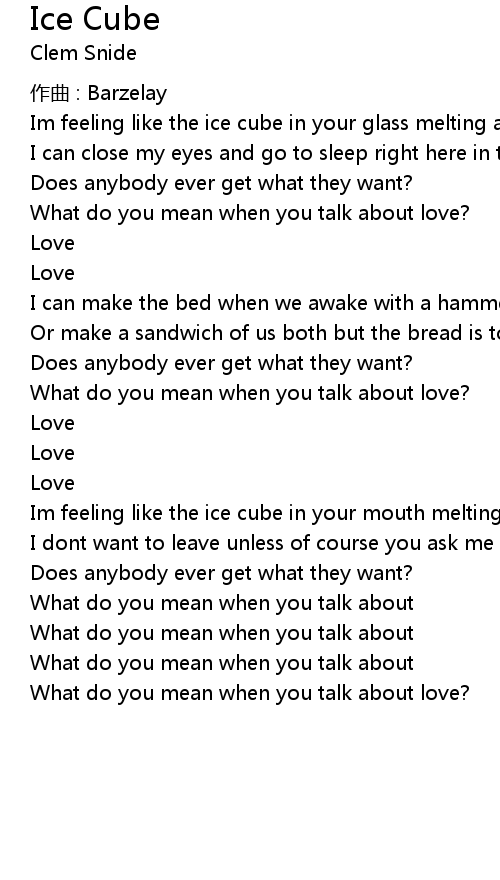 | Im feeling like the ice cube in your glass melting away | |