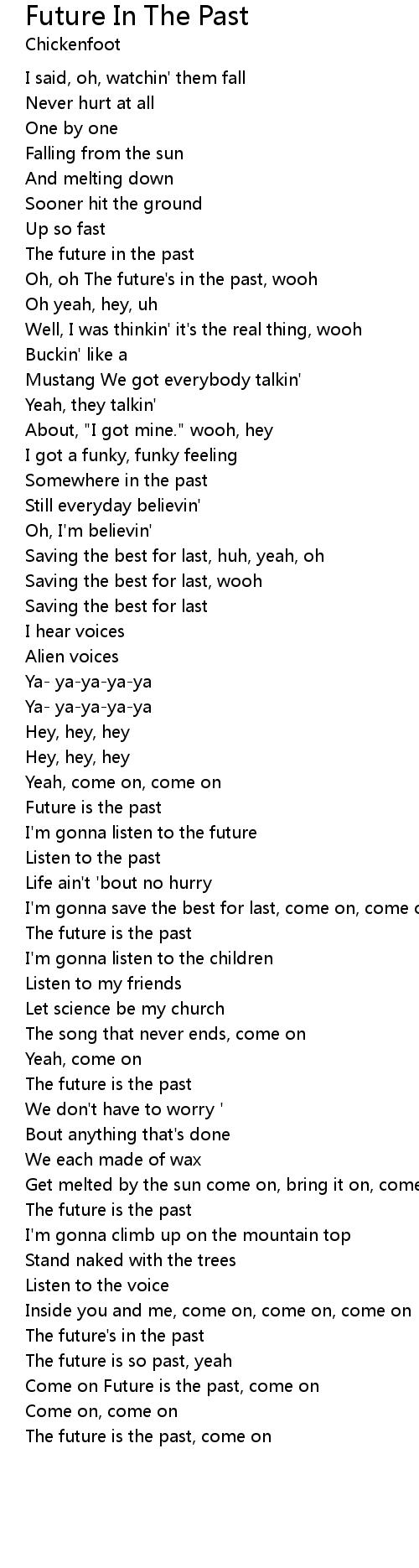 Come on Future is the past, come on |