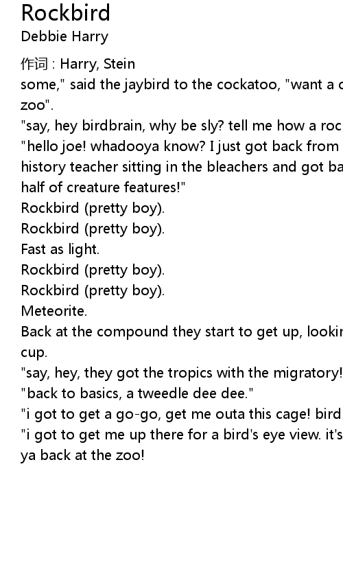 | " say, hey birdbrain, why be sly? tell me how a rockbird can learn to fly!" | |