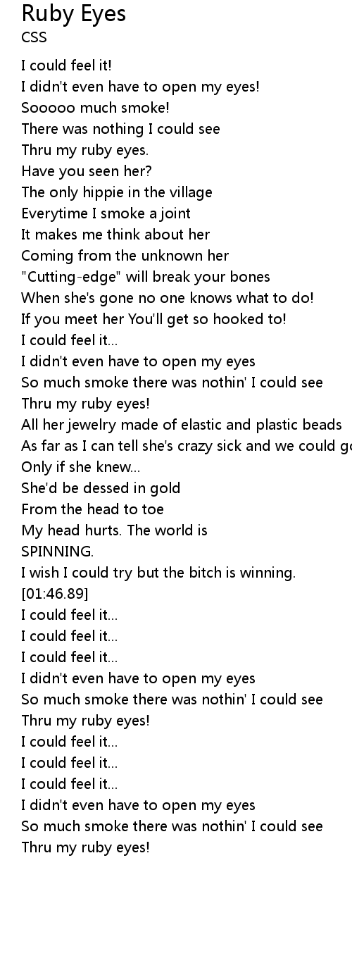 Thru my ruby eyes. |