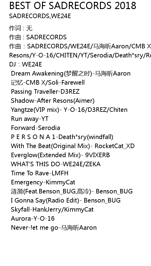 | 专辑 | BEST OF SADRECORDS 2018 |