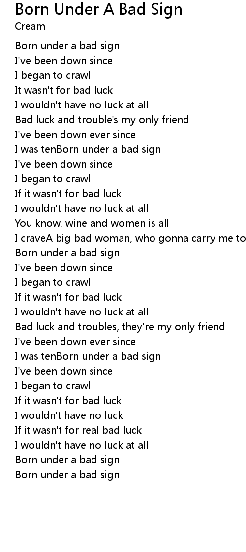 I was tenBorn under a bad sign |