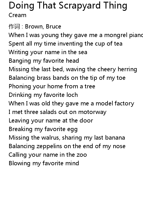 | 歌曲 | Doing That Scrapyard Thing |