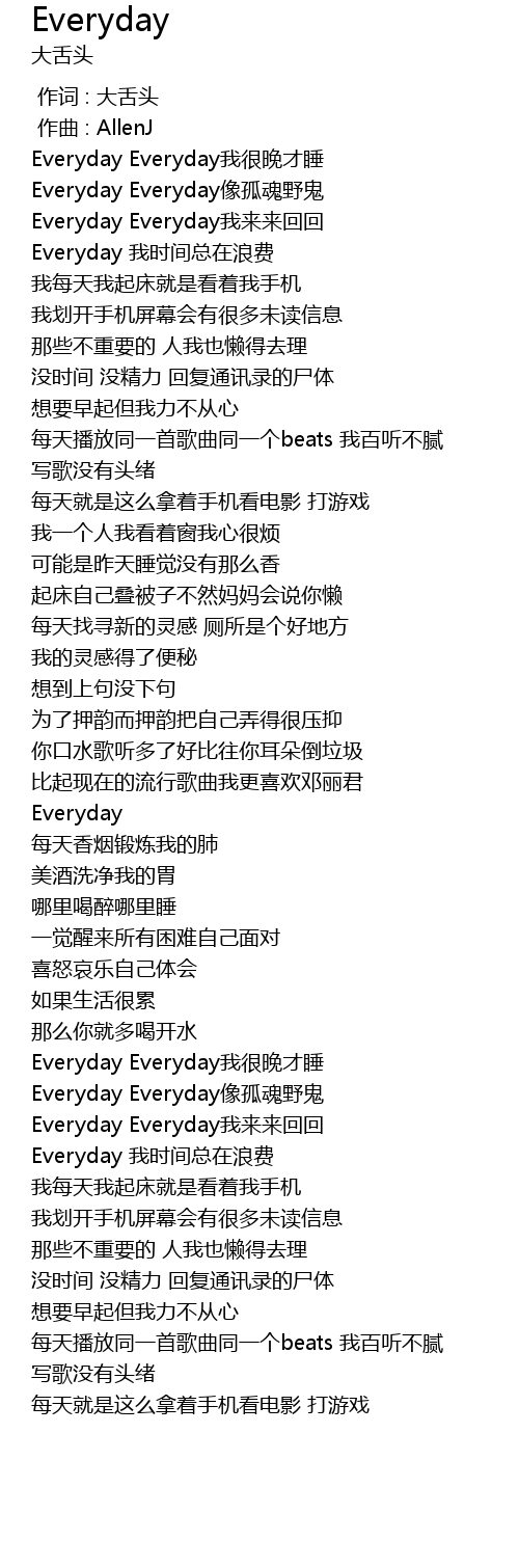 | [02:24.002] | Everyday Everyday wǒ hěn wǎn cái shuì |