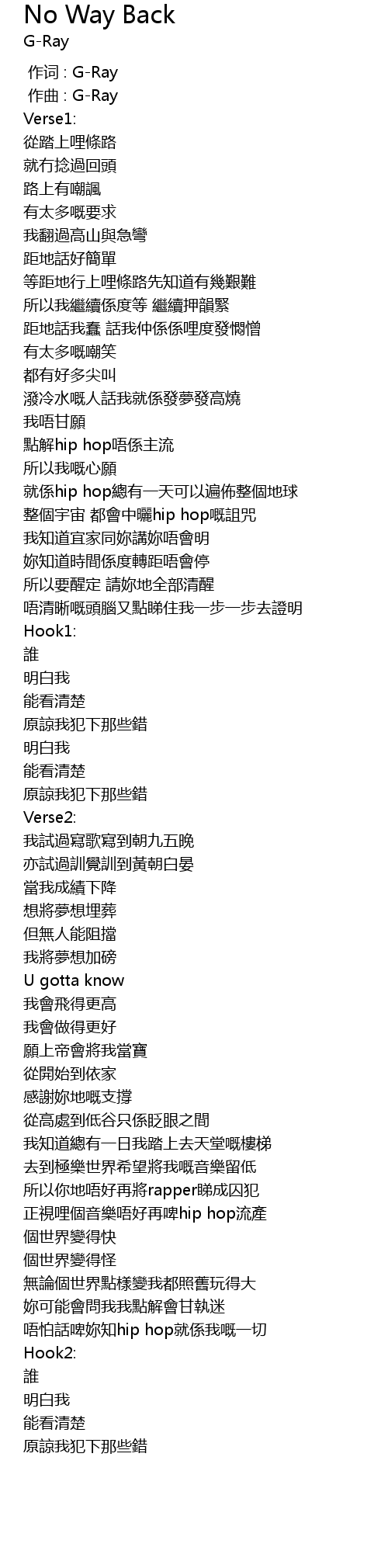 | [00:00.000] | 作词 : G-Ray |