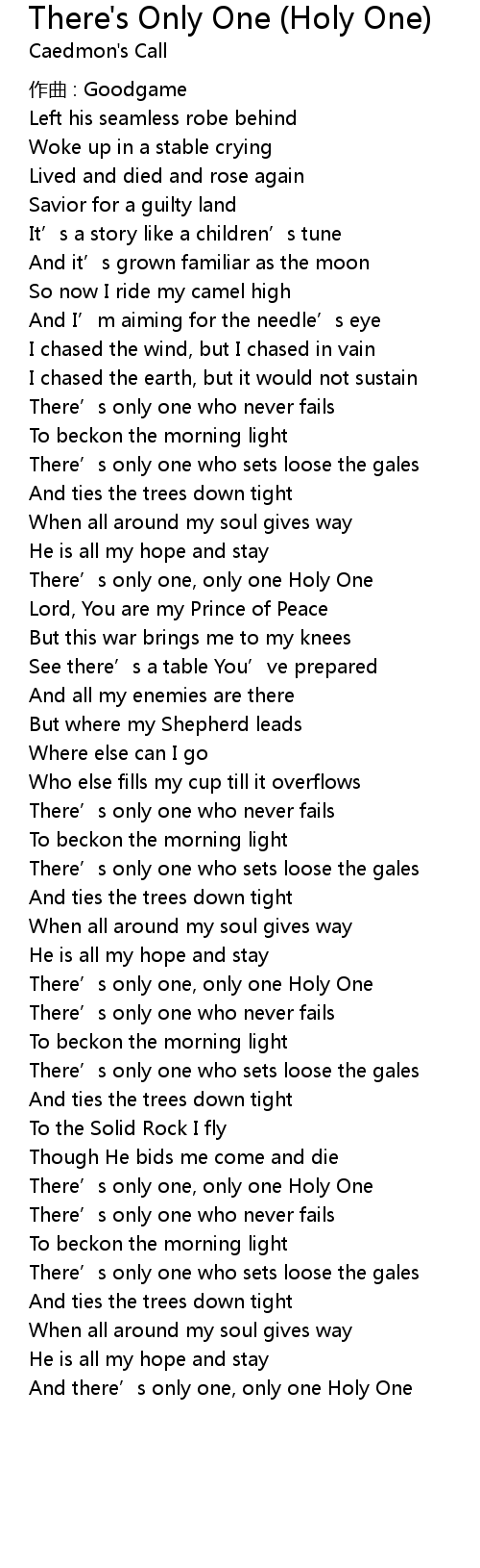 | 歌曲 | There's Only One (Holy One) |
