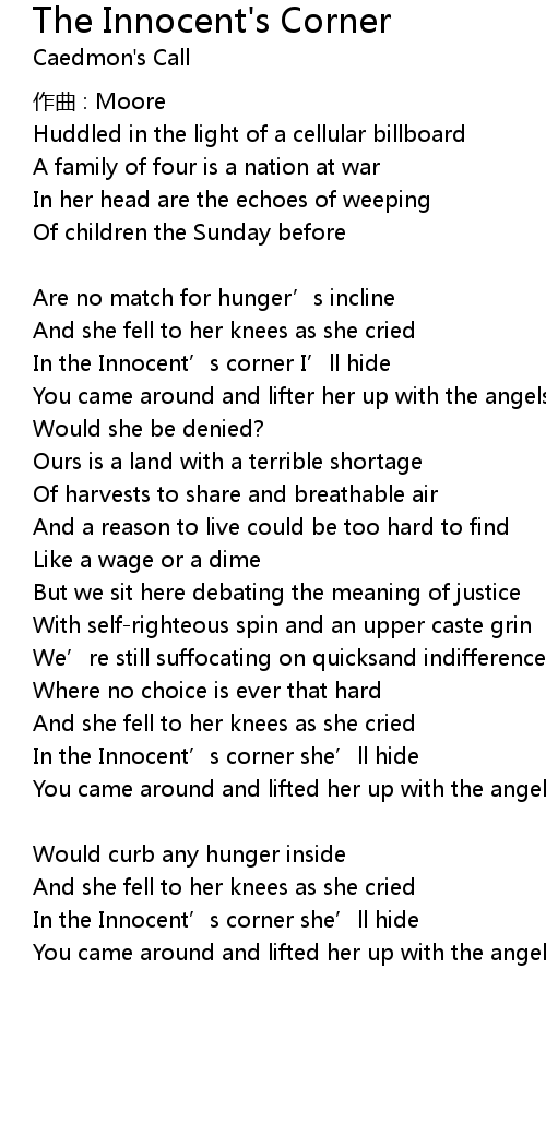 | In the Innocent' s corner I' ll hide | |