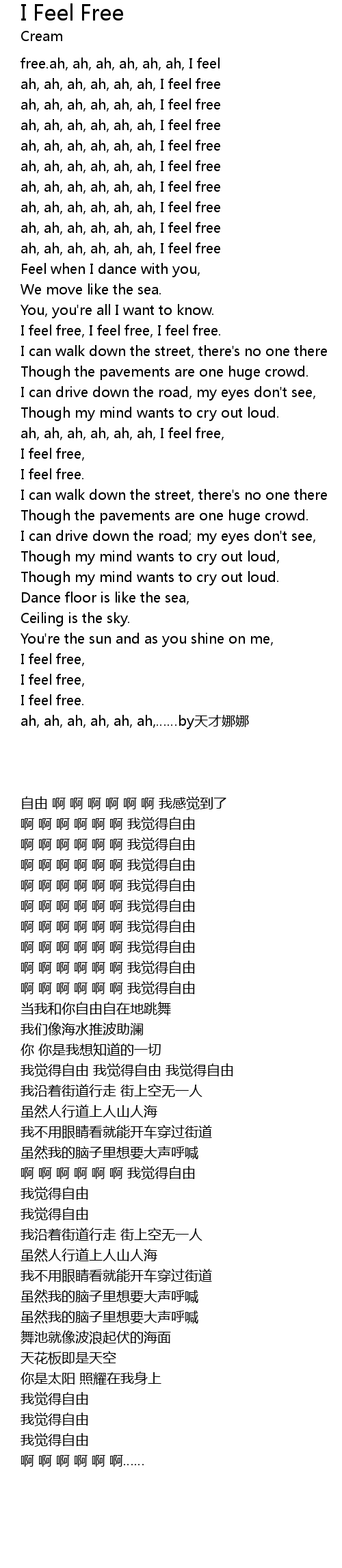 | [00:48.26] | I feel free, I feel free, I feel free. |