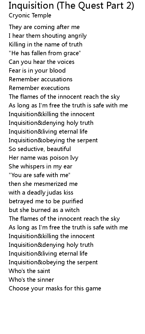 Inquisition&obeying the serpent |