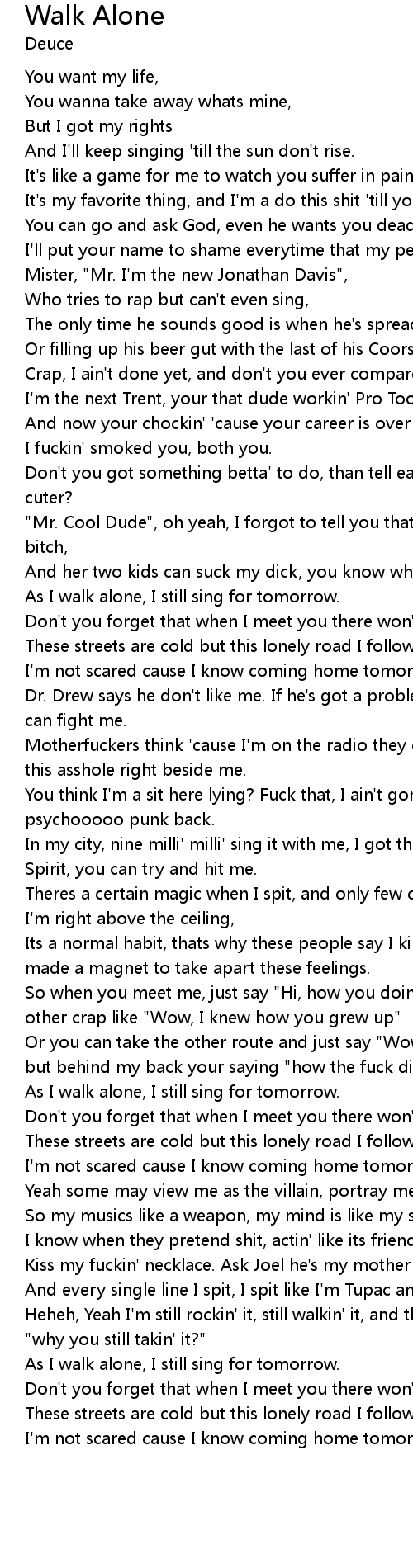 As I walk alone, I still sing for tomorrow. |