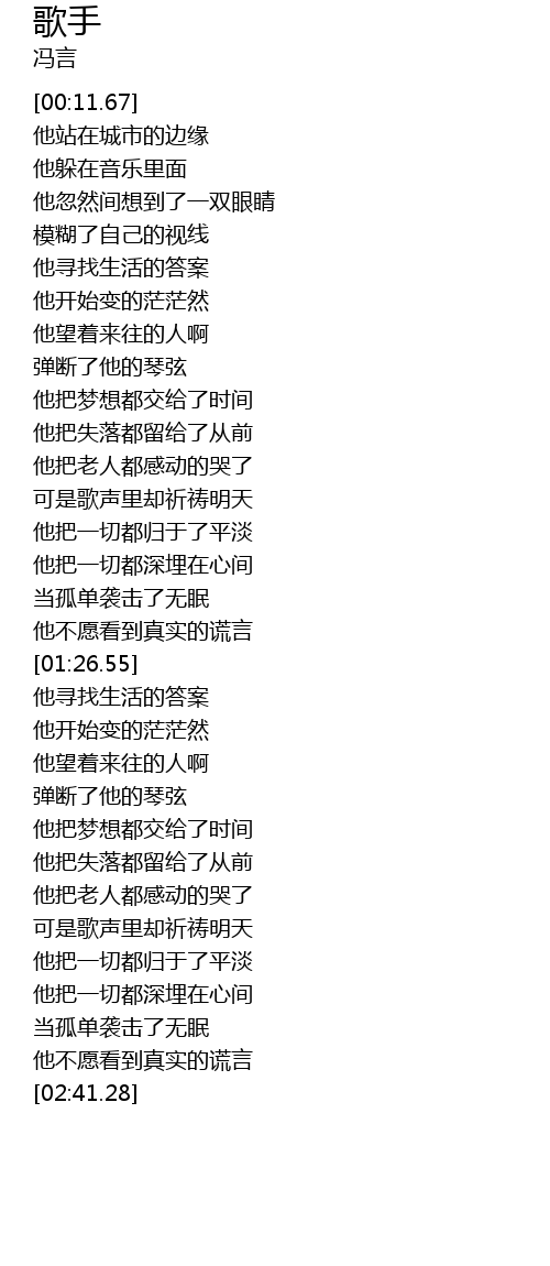 | [02:34.91] | 他不愿看到真实的谎言 |