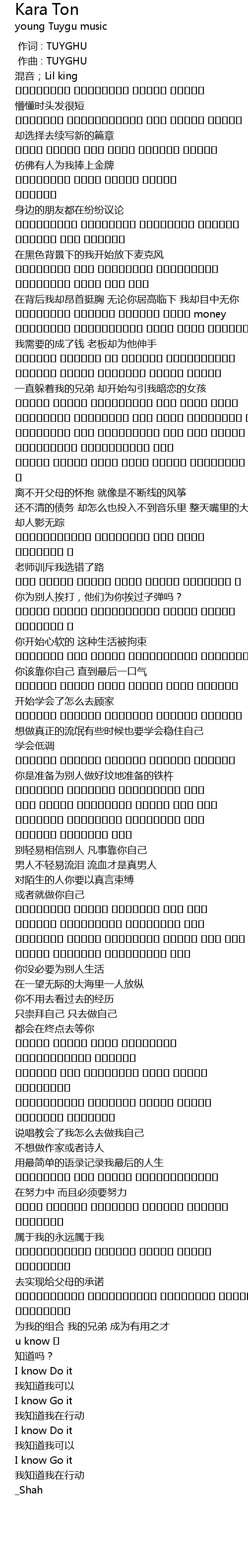 | [00:00.000] | 作词 : TUYGHU |