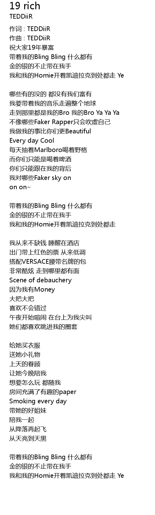 | 歌曲 | 19 rich |