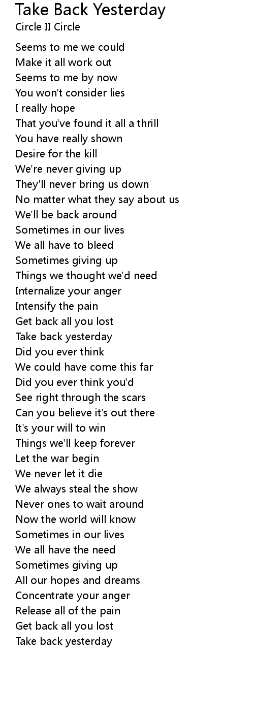 Take Back Yesterday 歌词