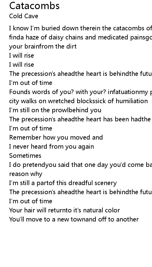 I know I'm buried down therein the catacombs of your minddig deeper and you'll finda haze of daisy chains and medicated painsgood god, when acid rain floods your brainfrom the dirt |