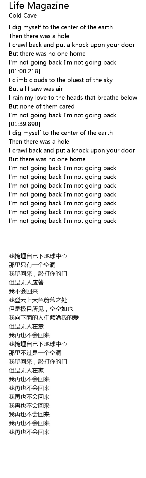 [02:39.998] I'm not going back I'm not going back