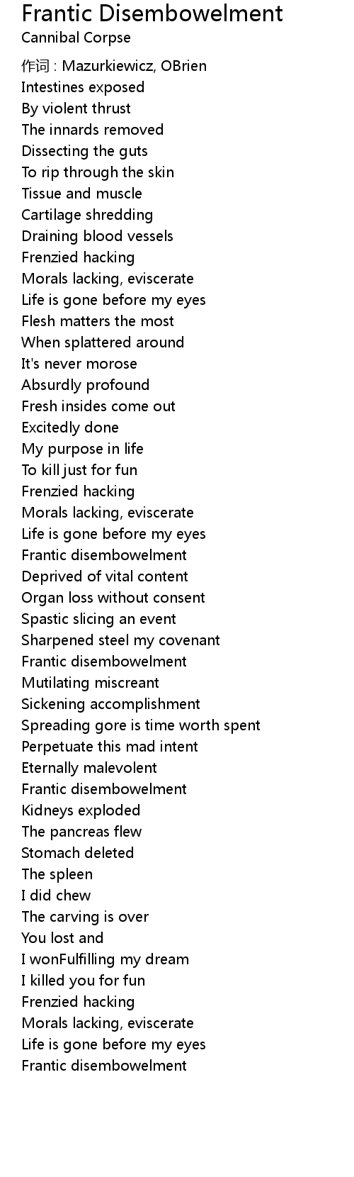 | 歌曲 | Frantic Disembowelment |