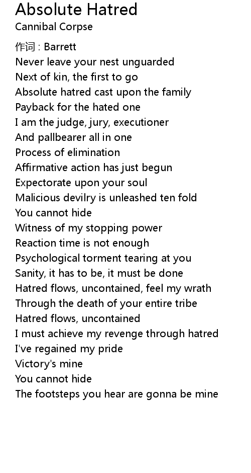 | 歌曲 | Absolute Hatred |
