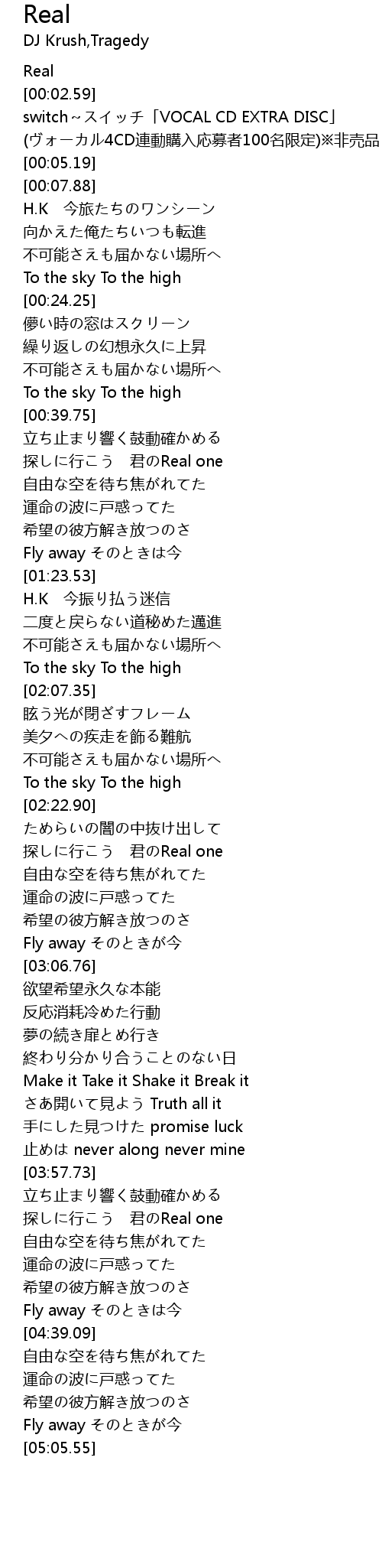| [00:02.90] | switch~スイッチ「VOCAL CD EXTRA DISC」 |
