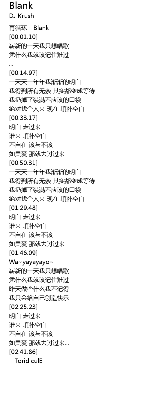| [00:00.10] | zai xun huan Blank |